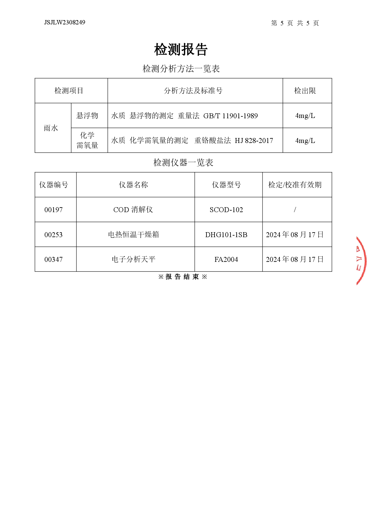 雨水檢測報(bào)告